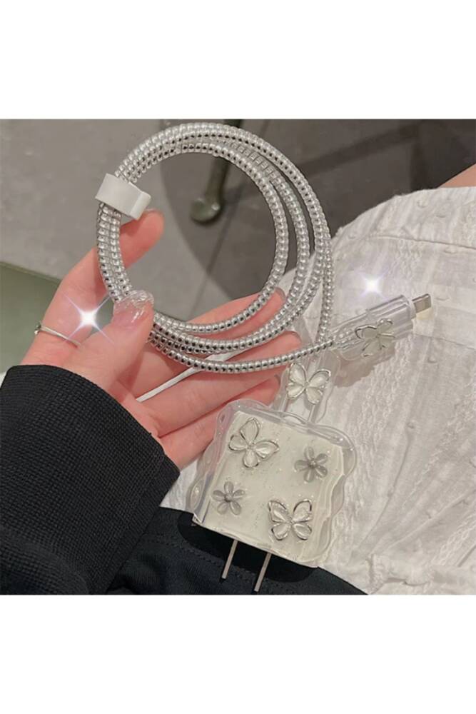 İphone 18w/20w Uyumlu Şarj Kılıfı, Şarj Kablosu Örme Aparatı, Kablo Koruyucu Toparlayıcı Şeffaf Kedi