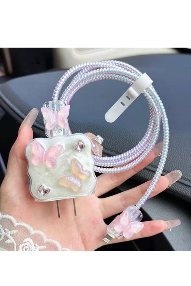 İphone 18w/20w Uyumlu Şarj Kılıfı, Şarj Kablosu Örme Aparatı, Kablo Koruyucu Toparlayıcı Şeffaf Kedi
