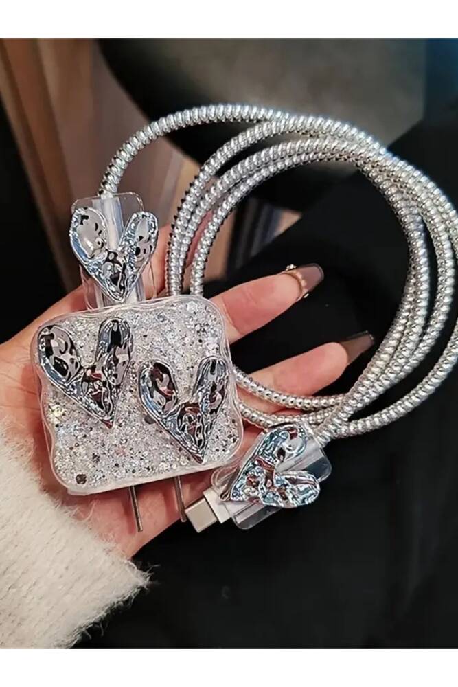 İphone 18w/20w Uyumlu Şarj Kılıfı, Şarj Kablosu Örme Aparatı, Kablo Koruyucu Toparlayıcı Şeffaf Kedi