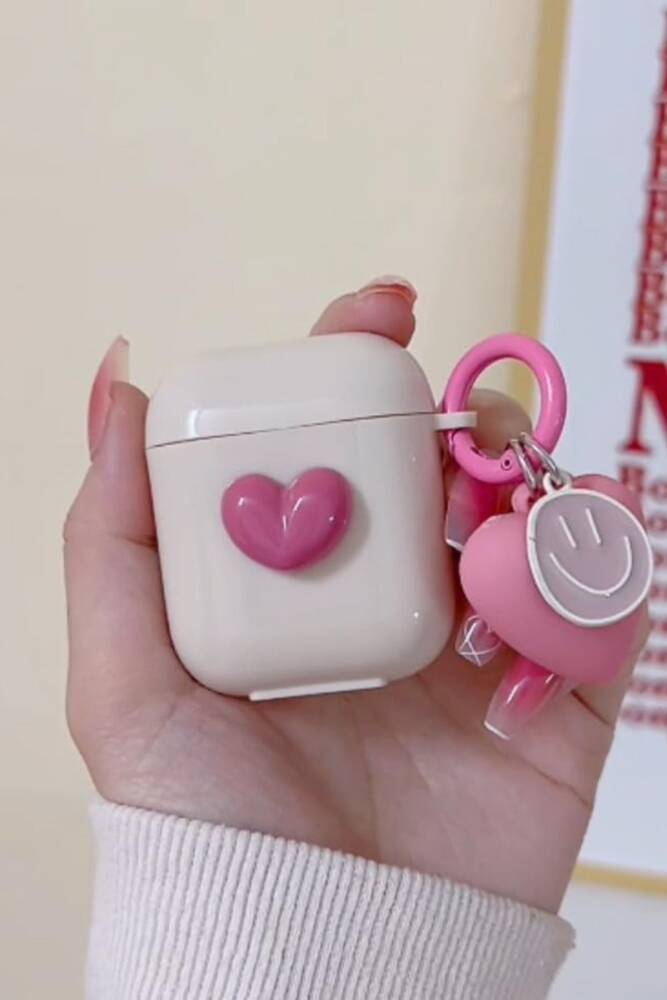 Airpods 1. Ve 2. Nesil Uyumlu 3d Roze Kalp Kopçalı Kulaklık Kılıfı
