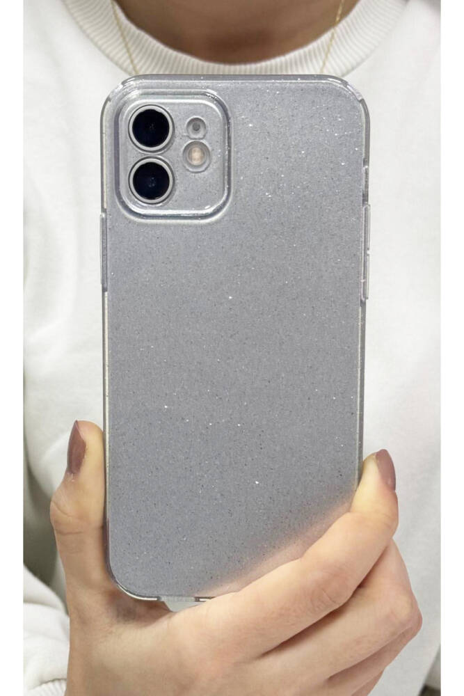 Apple iPhone 12 Uyumlu Kılıf Simli İnce Darbeye Dayanıklı Silikon Parlak Kılıf Yumuşak Kapak Silver