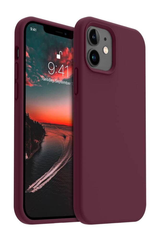 Apple iPhone 12/12Pro Kılıf Kadife Lansman Soft Yumuşak Liquid Silikon Kamera Korumalı Kapak Bordo