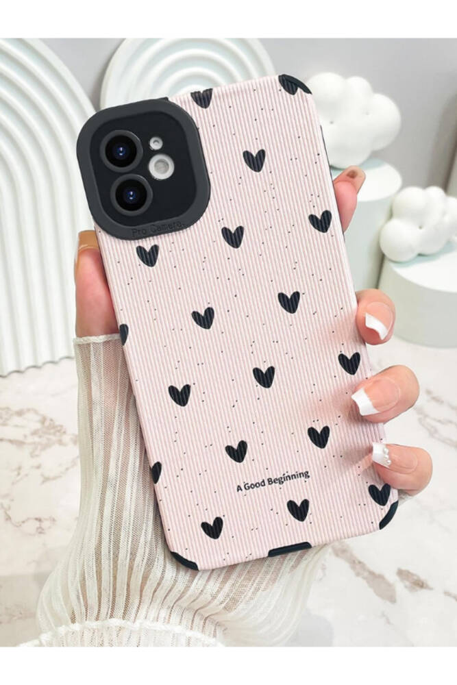 iPhone 11 uyumlu Kılıf Siyah Kalp Desenli Kamera Korumalı Estetik Zarif Yumuşak Silikon Kapak