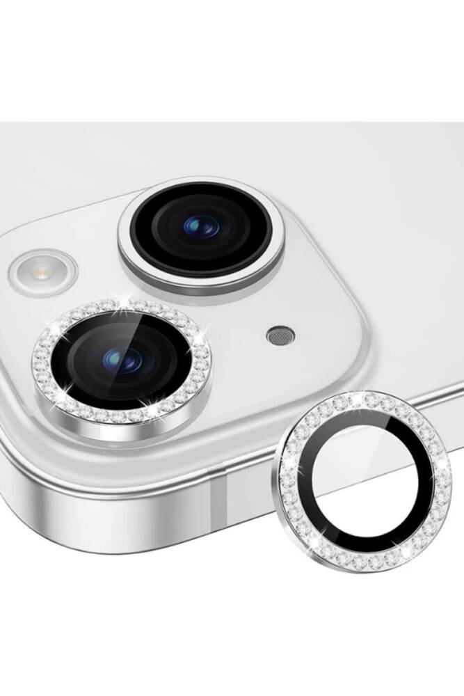 - 1 x iPhone 15 / 15 Plus / 14 / 14 Plus Taşlı Lens Koruyucu Temperli Cam - Gümüş