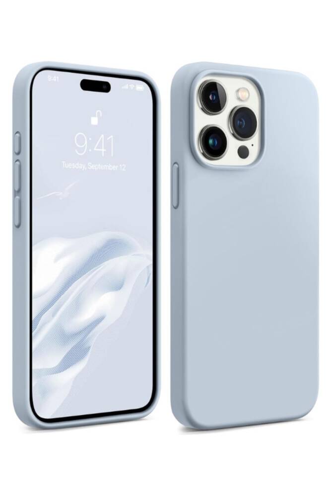 iPhone 15 Pro Kılıf Kadife Lansman Soft Yumuşak Liquid Silikon Kamera Korumalı Kapak Bebe Mavi