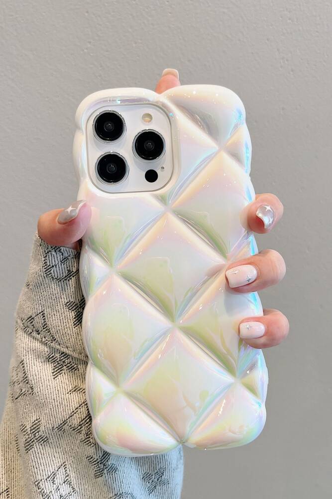 İphone 15 Pro Max Uyumlu Kılıf Beyaz Baklava Desenli Hologramlı Dayanıklı Yumuşak Silikon Kapak